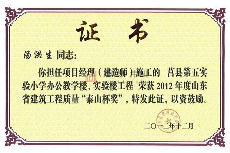 泰山杯優(yōu)秀項目經理證書