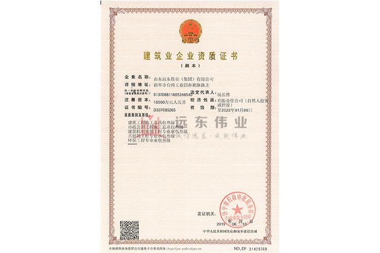 建筑工程施工總承包叁級 市政公用工程施工總承包叁級 建筑機電安裝工程專業(yè)承包叁級 古建筑工程專業(yè)承包叁級 環(huán)保工程專業(yè)承包叁級 2023-09-13 09:19:23 上一條:門窗備案證明 下一條: 建筑門窗行業(yè)資格證書 相關(guān)資訊 夯實基礎(chǔ)·砥礪奮進 | 重慶龍... 正在施工的和新承接的項目情... 近年完成的類似項目情況表... 關(guān)于加強項目部農(nóng)民工工資支... 熱門推薦 黃海明珠中心 濟寧運河城 開發(fā)區(qū)萬達廣場 中國重汽濟寧商用車有限公司