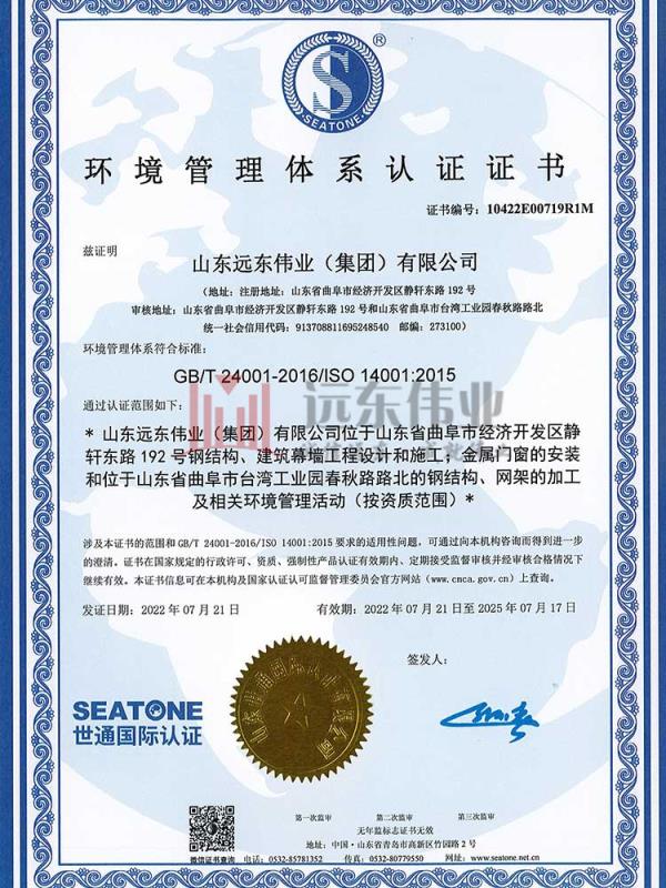 環(huán)境管理體系認(rèn)證證書(shū) 2023-09-13 09:26:09 上一條:職業(yè)健康安全管理體系認(rèn)證證書(shū) 下一條: 質(zhì)量管理體系認(rèn)證證書(shū) 相關(guān)資訊 夯實(shí)基礎(chǔ)·砥礪奮進(jìn) | 重慶龍... 正在施工的和新承接的項(xiàng)目情... 近年完成的類(lèi)似項(xiàng)目情況表... 關(guān)于加強(qiáng)項(xiàng)目部農(nóng)民工工資支... 熱門(mén)推薦 黃海明珠中心 濟(jì)寧運(yùn)河城 開(kāi)發(fā)區(qū)萬(wàn)達(dá)廣場(chǎng) 中國(guó)重汽濟(jì)寧商用車(chē)有限公司